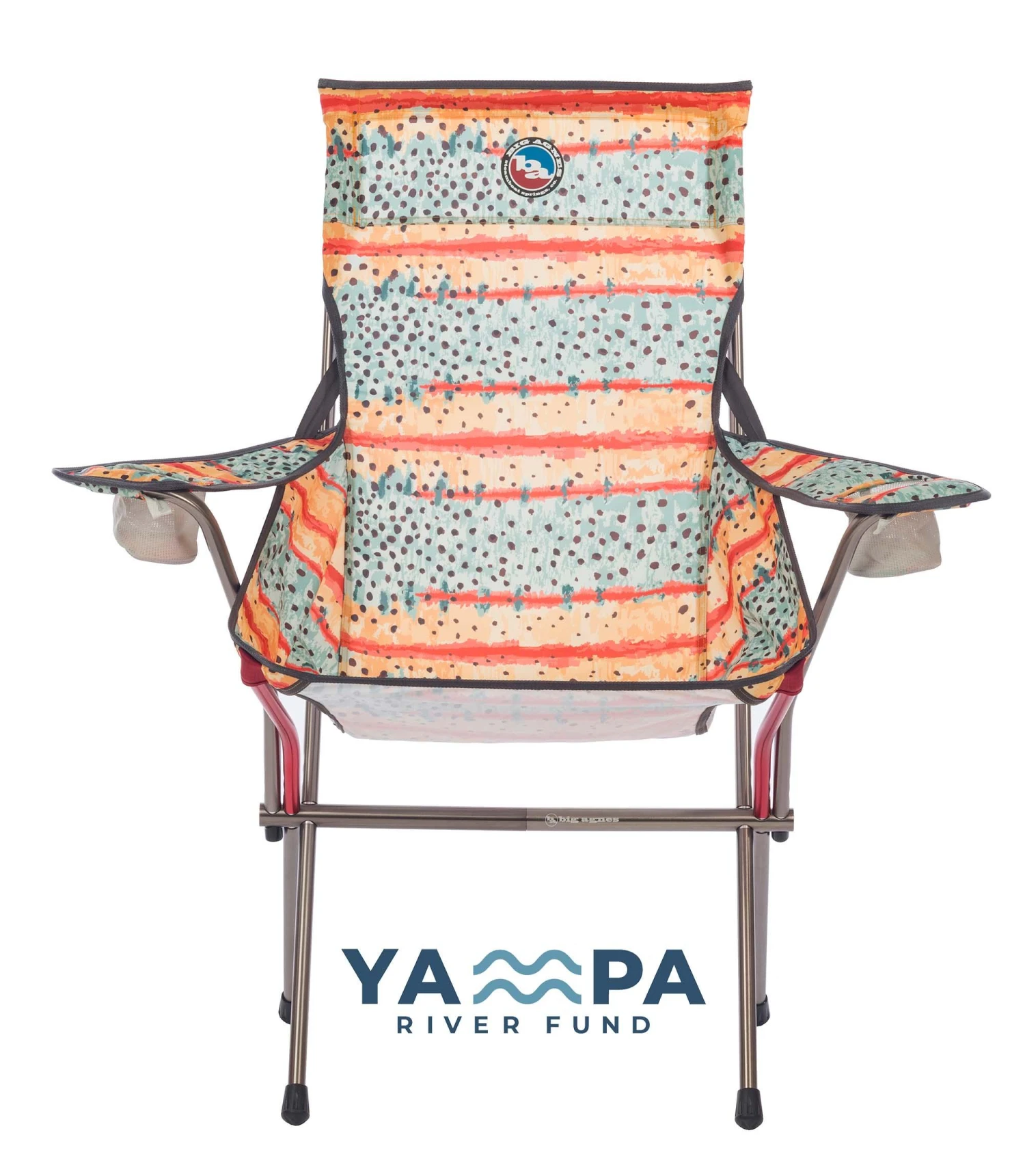 Deluxe camp armchair with two built-in cup holders provides comfort and convenience on the go