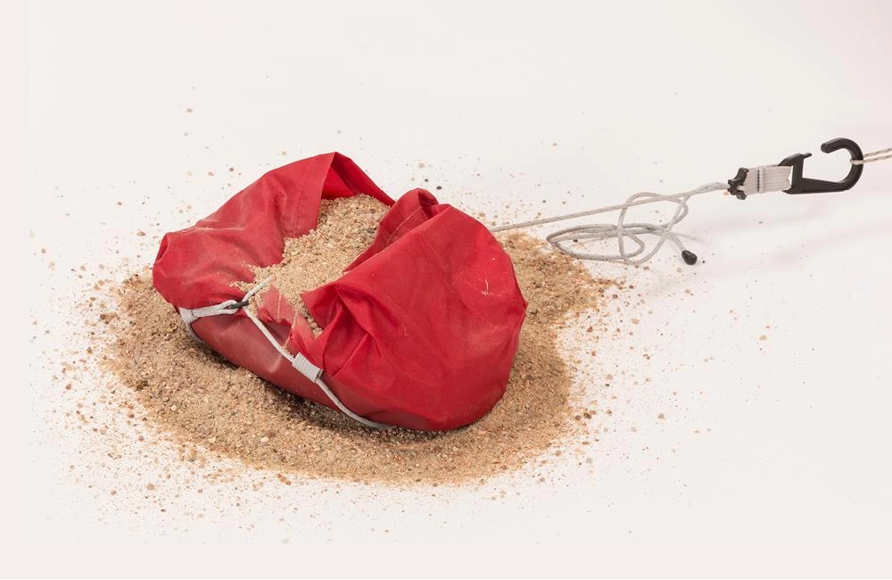 No-skid fabric keeps anchor in place on hard rock or dirt surfaces