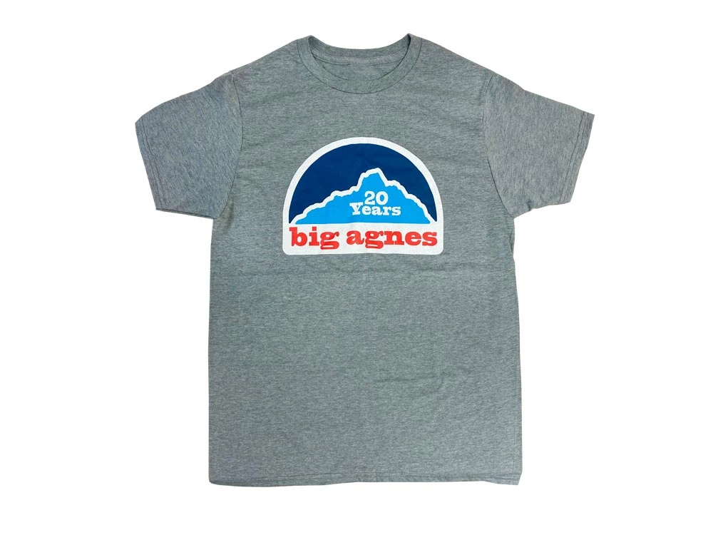 Celebrate 20 years of sleeping in the dirt with Big Agnes’ ultra soft ring-spun crewneck t-shirt.